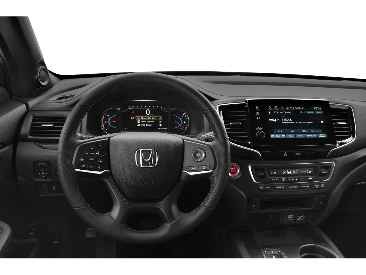 - Radio: 215-Watt Audio System -inc: 7 speakers, subwoofer, Bluetooth® HandsFreeLink and streaming audio, MP3/auxiliary input jack, Radio Data System (RDS), Speed-sensitive Volume Compensation (SVC), 2.5-amp USB charging port (1 port in center console/2 ports on 2nd-row), 8" display audio w/high-resolution touch-screen and customizable feature settings, HondaLink, CabinControl remote compatibility, Apple CarPlay integration, Android Auto integration, SMS text message function, SiriusXM (SiriusXM requires a subscription after any trial period, If you decide to continue your SiriusXM service at the end of your trial subscription, the plan you choose will automatically renew and bill at then-current rates until you call SiriusXM at 1-866-635-2349 to cancel, See our customer agreement for complete terms at www.siriusxm.com, Fees and programming subject to change, Available in the 48 contiguous United States and D.C, SiriusXM and all related marks and logos are trademarks of SiriusXM Radio Inc.), HD radio, 2.5-amp USB smartphone/audio interface (1 port in front console), wireless phone charger and Honda Satellite-Linked Navigation System w/voice recognition and Honda HD digital traffic