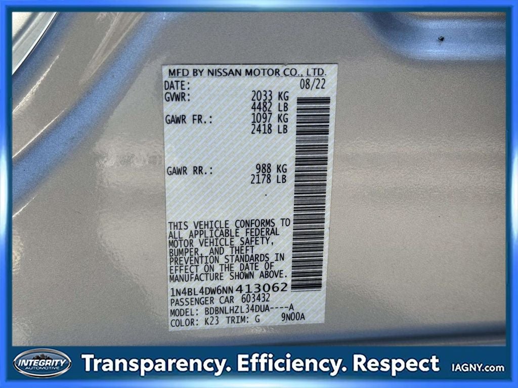 Includes Warranty, Maintenance Package, Roadside Assist, Dealer Serviced. Our customers will always experience our core values of Transparency, Efficiency & Respect! Nissan City of Springfield is proud to offer this (Vehicle). We used market-based pricing to assure you are getting the best value to current market conditions. All of our vehicles endure a rigorous reconditioning process to provide peace of mind and a great experience! Come on down or give us a call at (973) 314-2160 to schedule a test drive on this vehicle today! Nissan City Springfield is proud to offer this charming-looking 2022 Nissan Altima in Brilliant Silver Metallic.No Dealer Fees at Nissan City! We use market based pricing to assure you are getting the best value. All of our cars go through a rigorous reconditioning process to provide peace of mind and a great experience! This Altima includes the following options;