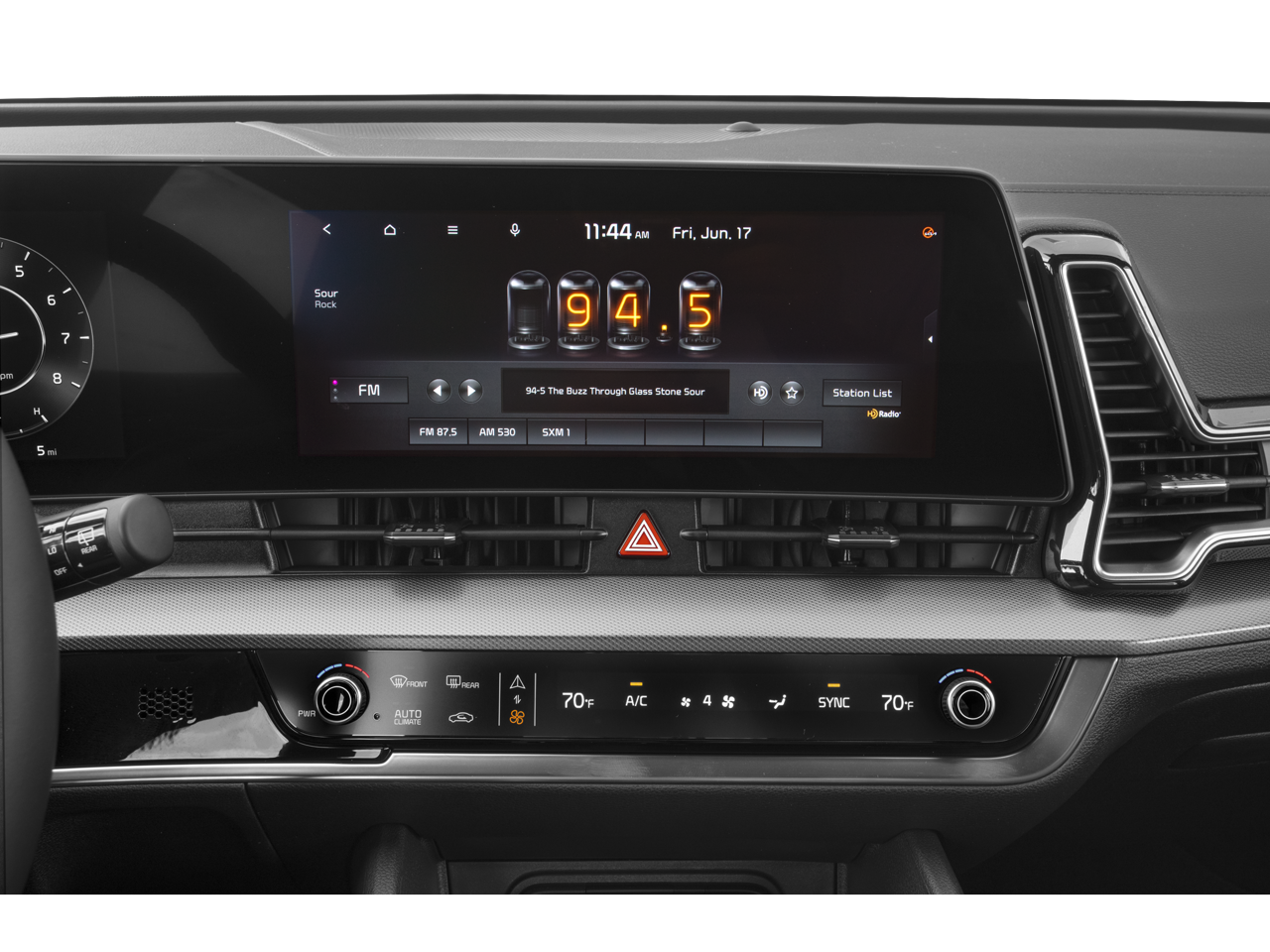 • Radio: AM/FM/HD Audio System -inc: 12.3" touchscreen w/navigation, 8 speakers including subwoofer, 400 W w/HALOsonic harman/kardon sound system, wired Apple Carplay and Android Auto, UVO telematics, voice recognition, SiriusXM, steering wheel mounted audio controls and Bluetooth® phone and streaming audio
