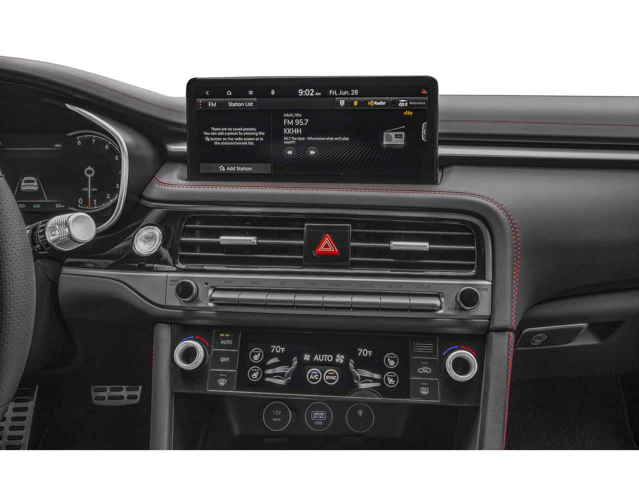 - Radio: AM/FM/SiriusXM/HD Lexicon Prem Audio System -inc: QuantumLogic surround sound, 15 high efficiency speakers including 2 subwoofers, Lexicon 11-channel digital external amplifier, speed-sensing, 5th generation navigation system w/10.25" touchscreen, dynamic voice recognition, connected routing, over the air updates, Android Auto and Apple CarPlay, SiriusXM Radio w/90-day trial subscription (not available in Alaska or Hawaii), Genesis connected services, Bluetooth® hands-free phone and audio streaming system and 3 USB ports