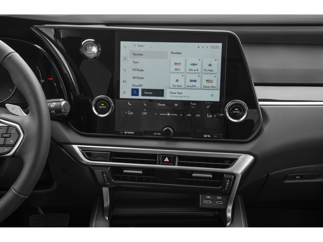 12 Speakers, 19 Wheels, 4-Wheel Disc Brakes, ABS brakes, Alloy wheels, AM/FM radio: SiriusXM, Anti-whiplash front head restraints, Auto High-beam Headlights, Auto-dimming door mirrors, Brake assist, Bumpers: body-color, Compass, Delay-off headlights, Dual front impact airbags, Dual front side impact airbags, Electronic Stability Control, Emergency communication system: Safety Connect (10-year trial), Exterior Parking Camera Rear, Four wheel independent suspension, Front anti-roll bar, Front Bucket Seats, Front dual zone A/C, Front fog lights, Fully automatic headlights, Garage door transmitter: HomeLink, Genuine wood console insert, Heated door mirrors, Heated front seats, Leather Shift Knob, Leather steering wheel, Low tire pressure warning, NuLuxe Seat Trim, Occupant sensing airbag, Overhead airbag, Panic alarm, Power door mirrors, Power driver seat, Power Liftgate, Power passenger seat, Power windows, Radio: Lexus Interface w/9.8 HD Touchscreen Display, Rain sensing wipers, Rear air conditioning, Rear anti-roll bar, Rear Parking Sensors, Rear side impact airbag, Remote keyless entry, Security system, Speed control, Speed-sensing steering, Spoiler, Steering wheel mounted audio controls, Telescoping steering wheel, Tilt steering wheel, Traction control, Trip computer, Turn signal indicator mirrors, Variably intermittent wipers.