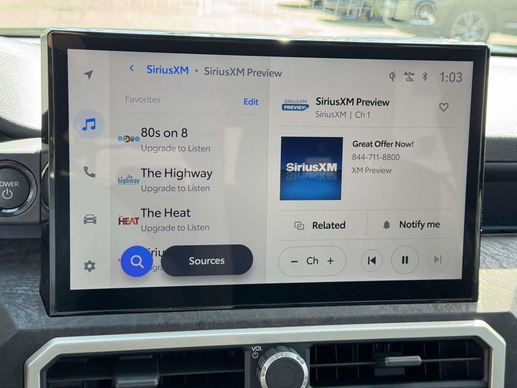 - Radio: 8" Toyota Audio Multimedia -inc: touchscreen, 6-speaker audio system, wireless Apple CarPlay and Android Auto compatibility and SiriusXM w/3-month Platinum Plan trial subscription, See toyota.com/audio-multimedia for details